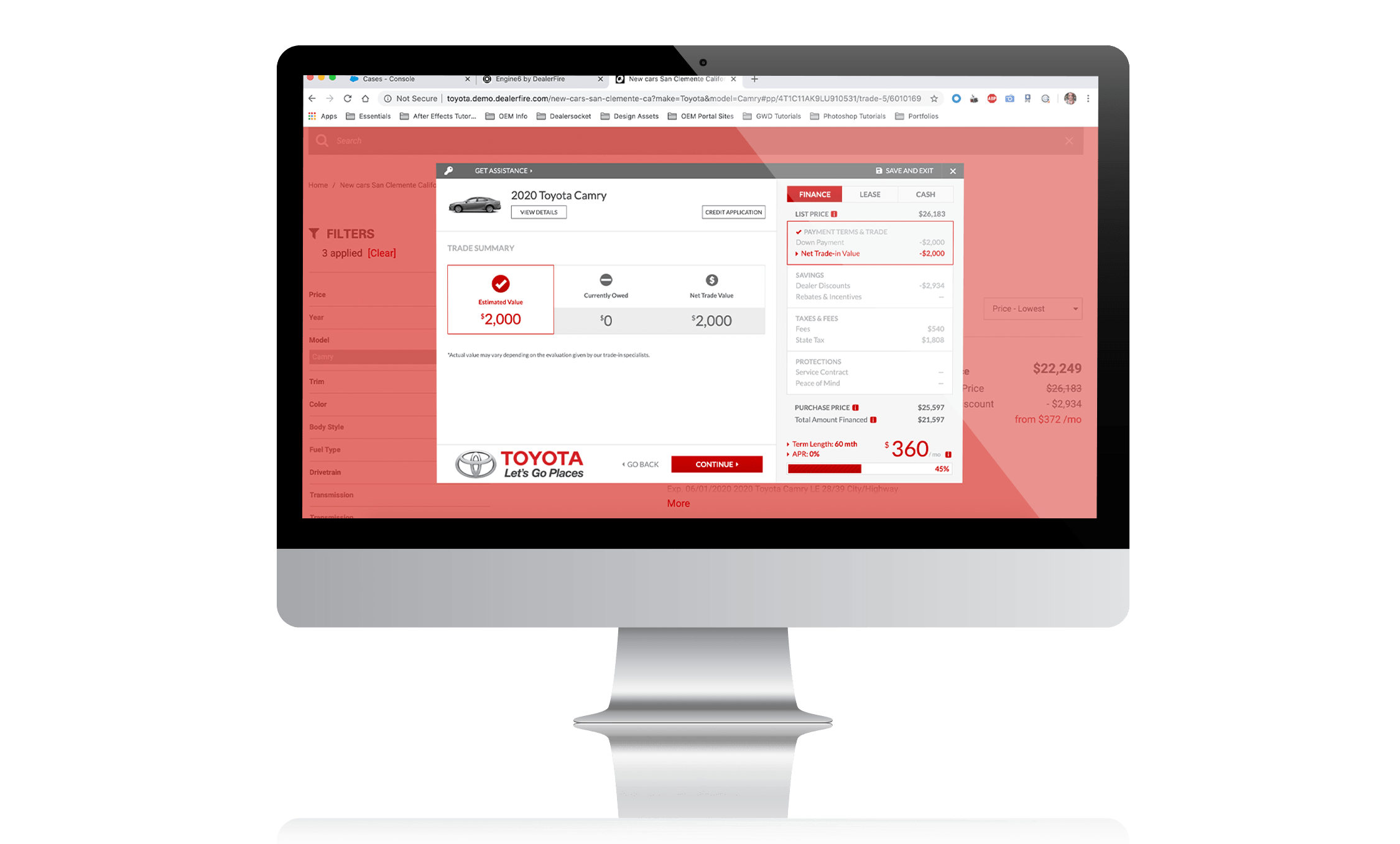 Looking to add trade-in to your deal? No problem! Get an estimated trade in value for your current vehicle using our guided trade-in estimation wizard. Once the estimate is offered, the value will be added to the deal structure.